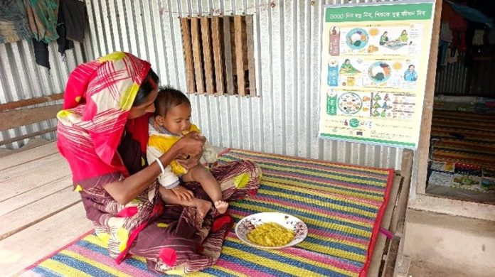 At the IYCF demonstration session, Zahida learned to select and prepare nutritious, age-appropriate meals for her daughter. She gained hands-on knowledge of cooking low-cost, nutrient-rich dishes, such as ‘Pusti Halwa’ and ‘Pusti Khichuri’, which are essential for the growth of malnourished children. Applying this knowledge at home, Zahida began feeding her daughter regularly with improved meals. Over the next three months, Jamila’s weight improved significantly and she looked healthier than before.