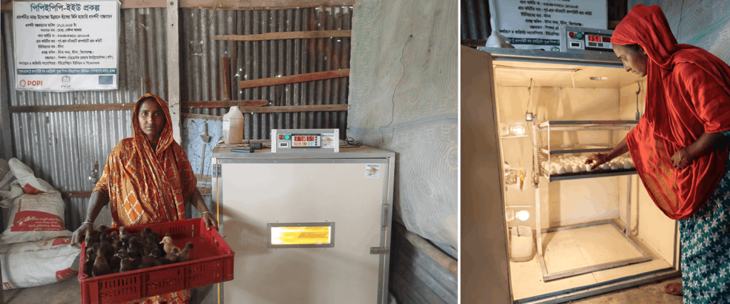 Selina also had a growing interest in establishing a hatchery in her house. After her success in duck farming, she received a 50,000-taka grant, along with necessary technical support, from the PPEPP-EU project in 2025 to establish a mini duck hatchery. Currently, local farmers are regularly buying ducklings from Selina’s duck hatchery, which earns her an additional average monthly income of 15,000 to 20,000 taka. With Selina and other farmers’ initiatives to establish duck hatcheries, local farmers’ costs for ducklings have decreased, and duckling mortality has also declined.